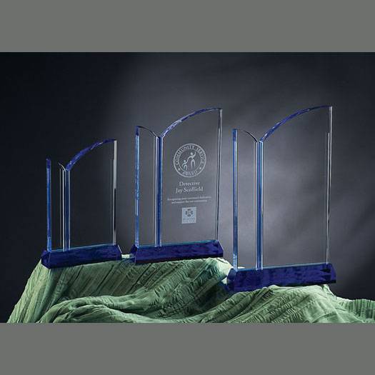 Part of the Nik Meller collection,this optical crystal ocean drive award is among the finest we have carried. It has a combination of blue and clear crystal and makes a quality statement. It has plenty of room to engrave your text and/or logo onto this crystal award.