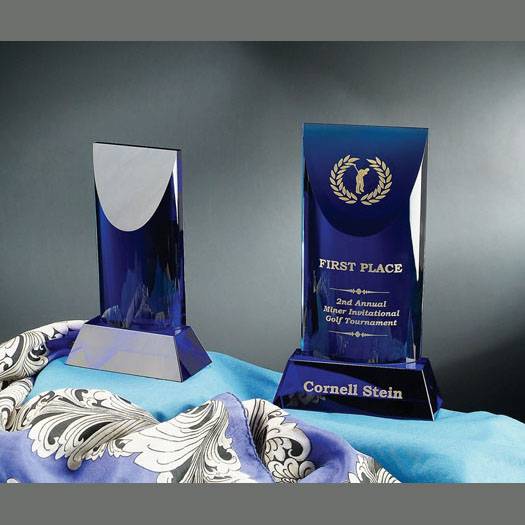 Part of the Nik Meller collection,this optical crystal patina award is among the finest we have carried. It is made of blue crystal and makes a quality statement. It has plenty of room to engrave your text and/or logo onto this crystal award.