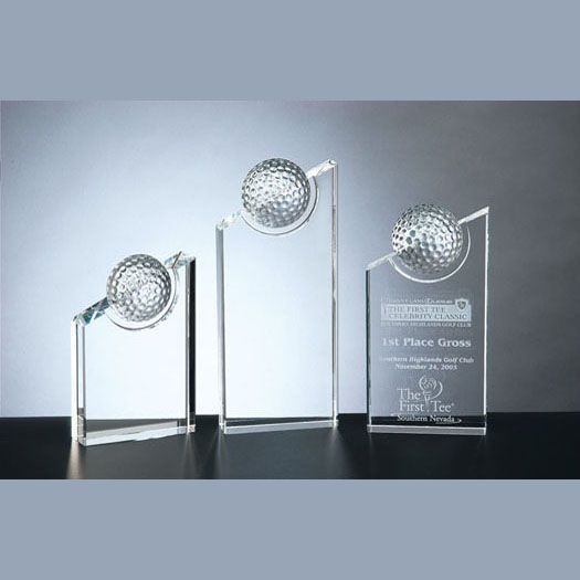 This optical crystal golf pinnacle award has a beautiful flat polishedf ace perfect for engraving your text and/or logo. What a great award to present to your favorite golfer.