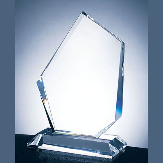 This optical crystal prestige summit award has a flat polished face with a faceted edge. There is plenty of room to engrave your text and logo on this crystal award.